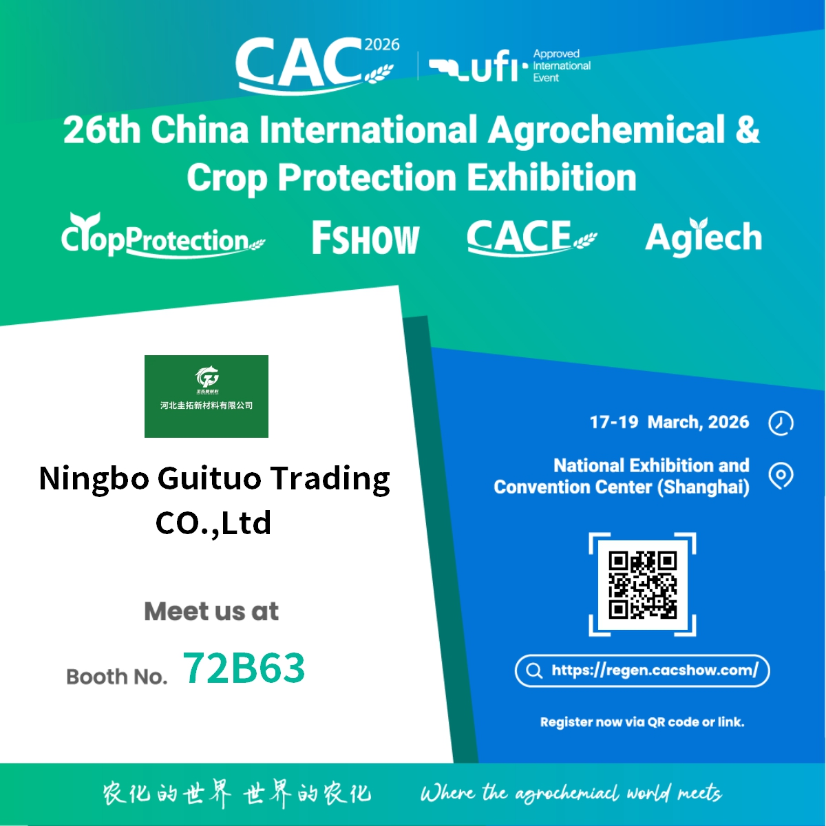 Do Ningbo Guituo Trading Co., Ltd., is deis ríthábhachtach é an taispeántas seo chun dul i ngleic le comhpháirtithe domhanda, ár réitigh trádála is déanaí a thaispeáint, agus cur le tírdhreach éabhlóideach na talmhaíochta inbhuanaithe agus cosaint barr.